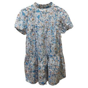 NWT Voy Blue/Brown Floral Escape Bubble Sleeve Tiered Dress~SMALL