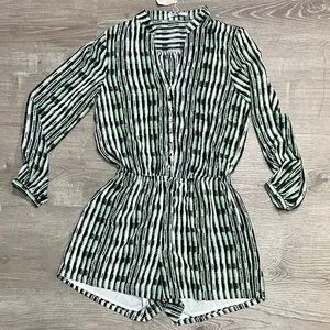 Stylish romper with black and green stripes. Perfect for casual outings.