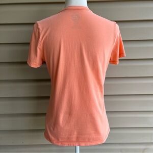 This is a Classic Fit, light orange short sleeved tee shirt from Life is Good, in a ladies size medium . This short sleeved, 100% cotton shirt is super soft and comfortable, you’ll want to wear it often! Features a crew neckline, and graphic of a glass of wine 🍷