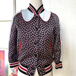 Beautiful preppy bomber Jacket. Beautiful silk floral print.