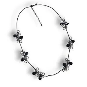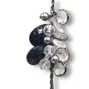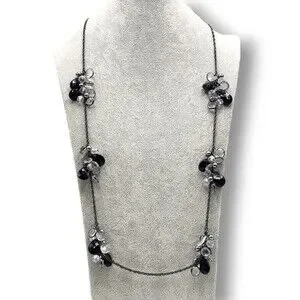 Chico's Long Black Clear Satellite Bead Necklace Long Adjustable Length