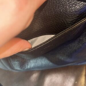 Interior has two slip pockets, one zip pocket and main compartment with magnetic snap closure. No signs of wear.