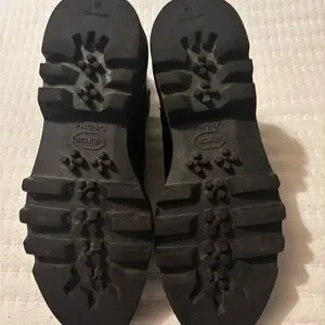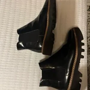 Step out in style with these sleek black leather Chelsea boots. Made in Italy, these luxurious (barely worn), lug sole boots are chic and timeless. (Size 39 - US equivalent Women’s size 8) Very good condition.