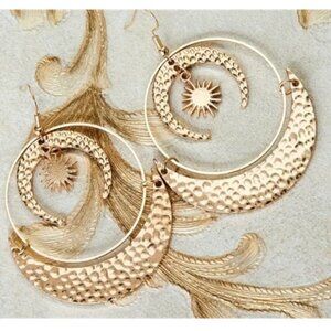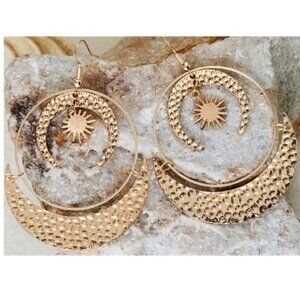 Bohemian Sun & Moon Openwork Drop Earrings - Golden -Tone Metal Detailing