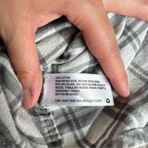 Goodfellow Gray/White Flannel Long Sleeve Button Up, Size Medium