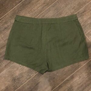 ecoté olive green shorts with cute front slit pockets and a zip fly
