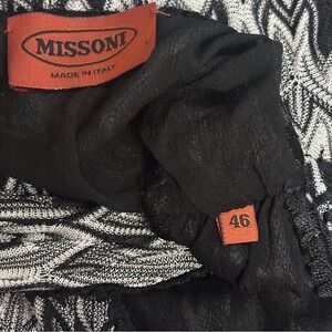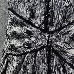 Missoni Italy vneck belted knit dress 10 sleeveless silk lined cinch waist black white. Rouleau buttons, slight bubble hem, unique belted waist, sash ties. Excellent condition. Measurements in photos. 9 oz.