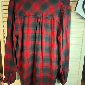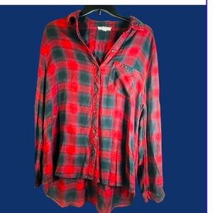 BEACHLUNCHLOUNGE Red and Black Plaid shirt- long and relaxed fit