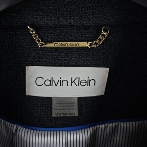 Calvin Klein Textured Open Front Jacket Women Size 18 Button Blazer Navy Blue