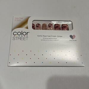 NWT Color Street Retired "Crush Hour" Pink Hearts Glitter Nail Strips