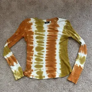 BDG Urban Outfitters Rhiannon Orange Yellow Tie-Dye Long-Sleeve Tee Size Small
