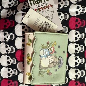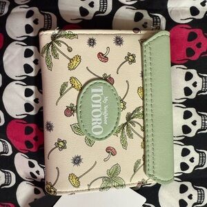 Delightful Totoro crossbody bag and wallet set in cream and green, featuring playful illustrations. Brand new purchased at San Diego comic con exclusive launch in 2023