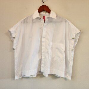The Yohji Yamamoto Takeshi Kosaka By Y's Pink Label White Shirt is a versatile and stylish top designed for various occasions. Made of 100% cotton knit fabric, this cropped shirt features a collared neckline, button closure, and removable sleeves with a ruffle accent. The shirt is adorned with intriguing details such as a boxed oversized fit, a waist-length hemline, and a Japanese designer touch. Perfect for those who appreciate art-to-wear fashion with a hint of grunge and minimalist aesthetics, this T-shirt embodies a blend of streetwear and quiet luxury styles. Made in Japan, this shirt is machine washable and a must-have for those seeking a unique and edgy addition to their wardrobe.  In Excellent Pre-Owned Condition. Please pay attention to the measurements, this is final sale no return for reason of measurement except the product not like the description when you receive.