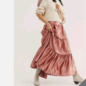 Free People XS Metallic Rose Moonbeam Tiered Maxi Skirt Satin Finish
