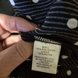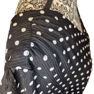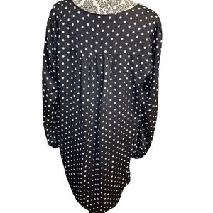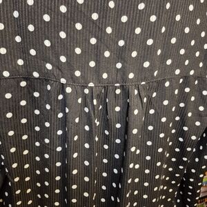 Elegant black dress with polkadots and a sleek design. Perfect for any occasion.