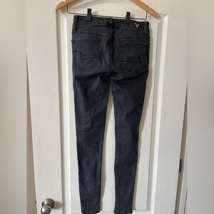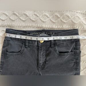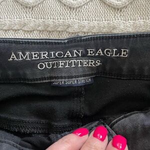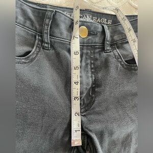 EUC excellent condition! A little wear on front button but otherwise great! Black super stretch jegging by American Eagle. Measurements in photos. Zipper fly. Women’s size 0, Longer length. See photos. Smoke free home