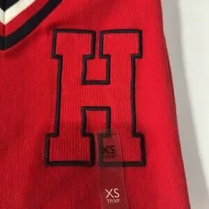 NWT Tommy Hilfiger Letterman H Red Navy Blue White Sweater Size XS