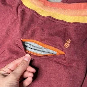 Back zippered pocket, Chubbies pineapple logos, and contrast side pockets.