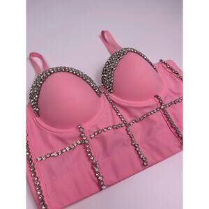 NWT Molly’s World Boutique Pink Rhinestone Cropped Corset Top Size 34B / XS