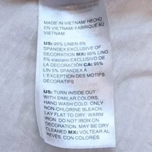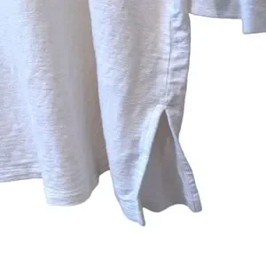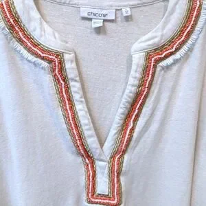 Chico's Beaded Embellished Notched Crew Neck 3/4 Sleeve White Linen Top (XL)