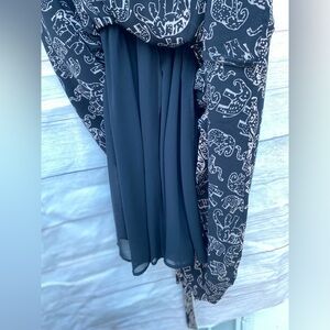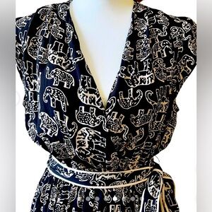 Anthropologie Maeve Noronha Black Elephant Print Flowy Faux Wrap Dress Size Small Pre owned Great condition Measurements laying flat approximately Pit to pit 21.5” inches Waist 14-17” inches Hip 23.5” inches Shoulder to hem 35”inches.