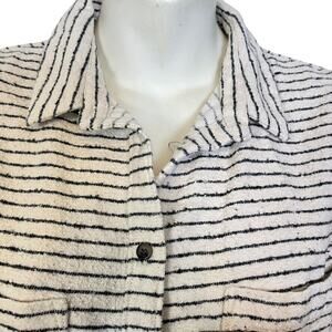 Madewell Flannel Oversized Ex Boyfriend Button Down Shirt Mick Stripe Ivory sz M