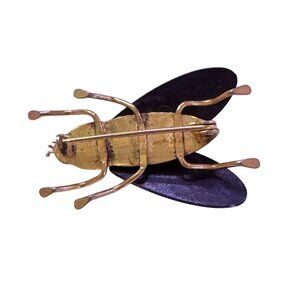 Vtg 70s Insect Brooch/Pin Gold Tone Black Enamel Wings Geometric Pattern Wings