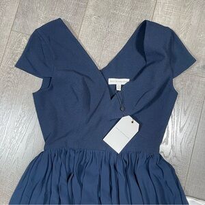 DRESS THE POPULATION Corey Midi Dress Chiffon Fit & Flare Cocktail Size S Navy