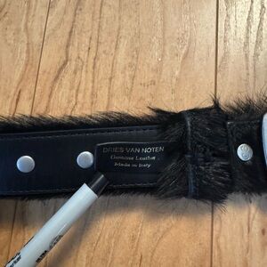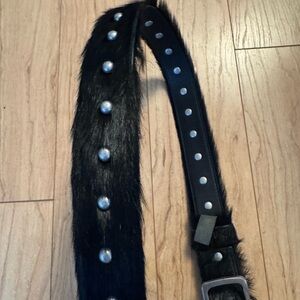 Dries Van Noten Black Hair On Leather Furry Belt with Silver Studs