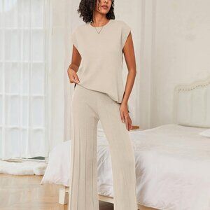 Lounge Sets for Women Two Piece Outfits Knit Cap Sleeve Tops Wide Leg Pleated Pa