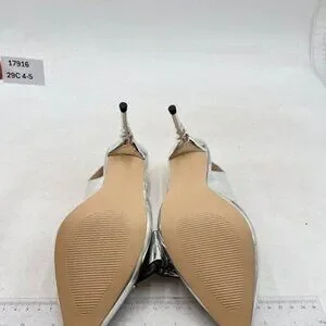 YDN Women Stiletto Heel Pumps Bow Pointed Toe Slingback Slip on Sandals Sliver