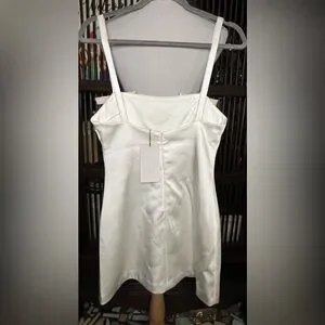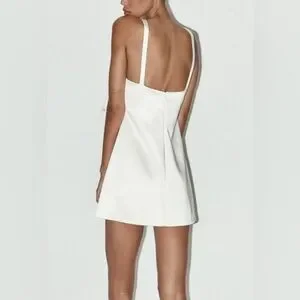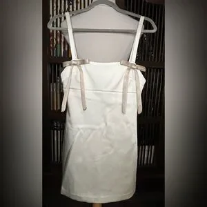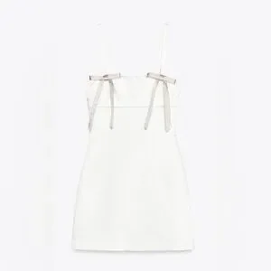 Contrasting combined bow detail. Inner lining. Back hidden in-seam zipper closure. Oyster-white
