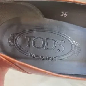 TODS PATENT LEATHER TAN ANKLE STRAP PUMPS ROUND TOE ITALIAN HEELS WOMEN'S SZ 35