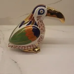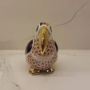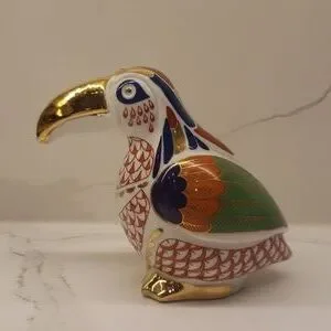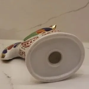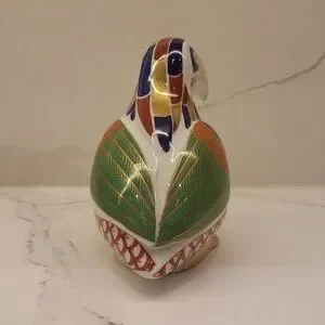 Vintage Set of 2 Unbranded Rooster and Parrot Ceramic Multi Color Gold