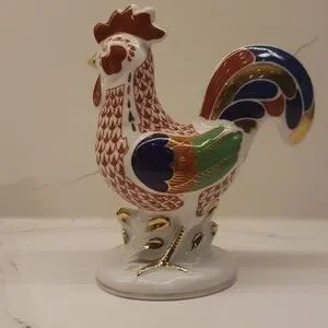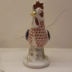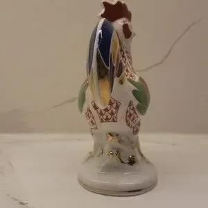 These lovely ceramic figurines are in good condition with minimal wear of gold missing on one of rooster's eye and some minor scuffs/scratches on rooster's tail. See photos.