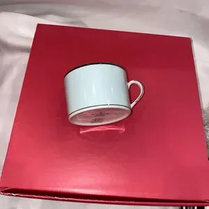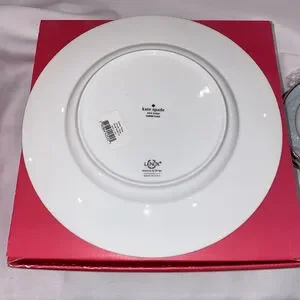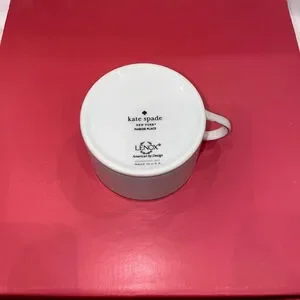 The set is made of fine china and is dishwasher and microwave safe. The set comes in a pink box with the Kate Spade New York logo. The set is made by Lenox and is American-made and is perfect for everyday use or for special occasions.