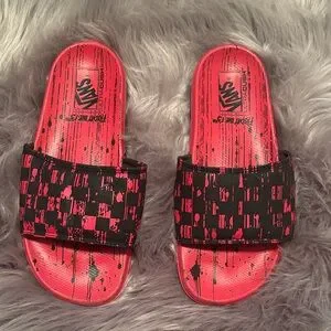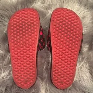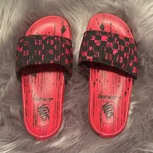 Vans Horror slides, Friday the 13th, Jason Voorhees. Bold red with black accents. Perfect for casual wear. Worn once, light wear on the bottoms, see photos.