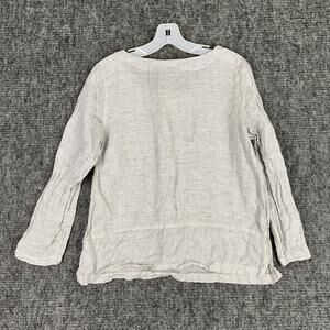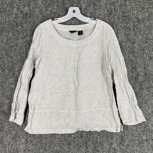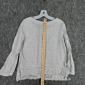 Tahari Shirt Womens Medium Black Striped Linen Top Business Casual Cottagecore