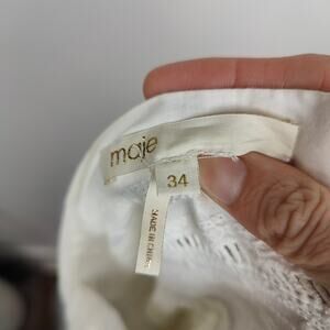 Chic white tiered midi skirt with black accents by Maje. Perfect for versatile styling. There is no lining on this skirt. I paired it with a white bodycon dress to serve as the top and a liner to the skirt. I typically wear a size 24 jeans and 0 or 00 in bottoms. This is a size 34 and I would say it runs on the smaller size.