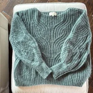 Cozy crew neck sweater. Intricate knit pattern. Perfect for layering.
