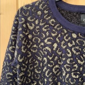 Zara Knit Navy and Gold Leopard Print Sweater