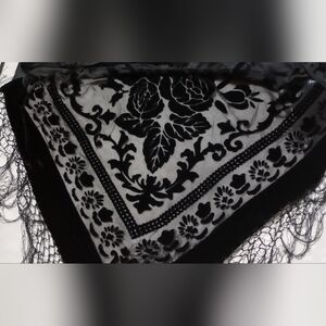 Black Floral Shawl with Fringe