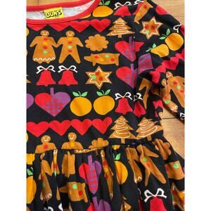 Size 128/8. Black with holiday gingerbread print. 100% organic cotton.