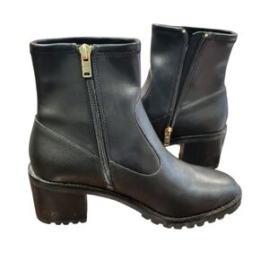 Benefits Charity!! Coach Women's Joy Leather Booties/Boots. Size 9.5 B Nice chunky heel! Nice gold details on heel and zipper.  Good condition, some scratches on the heels. See pictures please!