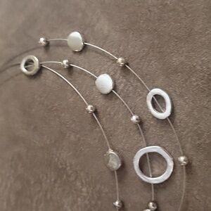 3/$30 VTG Silvertone Layered Floating Illusion Beaded Station Necklace