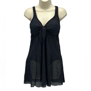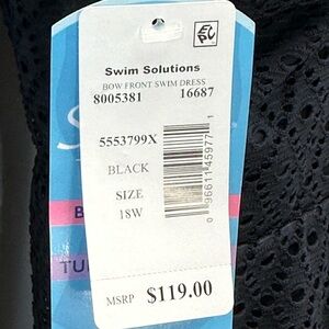 Swim Solutions Bow Front Tummy Control Thigh Minimizer Swim Dress - Black - 18W