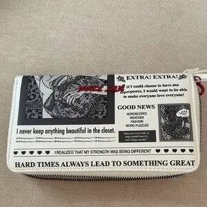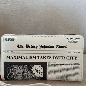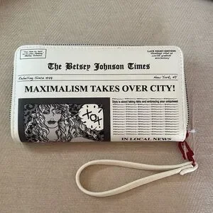 Betsey Johnson White and Black Newspaper wristlet wallet