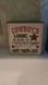 Shelf Sitter featuring 'Cowboy's Logic' text and raised star. Perfect for adding a rustic touch to any room.