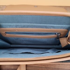Stylish and versatile crossbody bag. Slight wear around the bottom corners, blemish on the bottom seam line and a couple of marks on the back, see pictures for reference.
