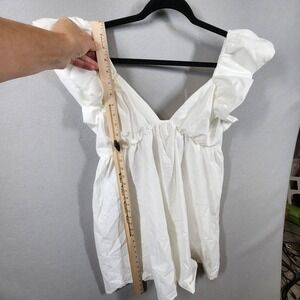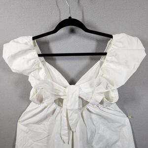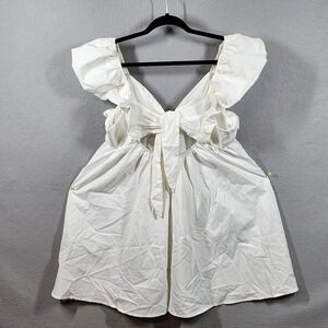 SHEIN X Dress Womens Large White Ruffle Sleeve Tie Back Mini Babydoll Style